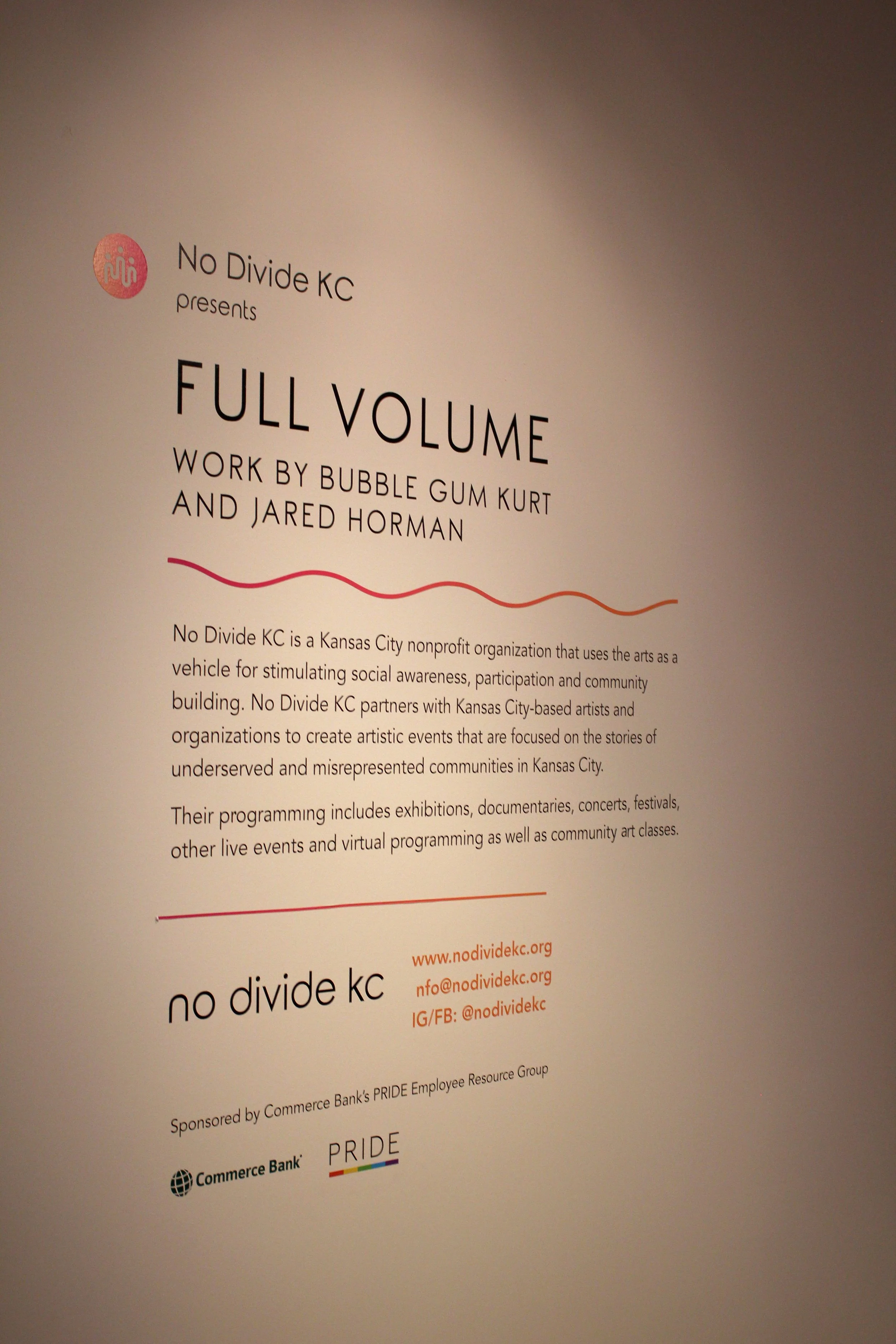 No Divide KC is a Kansas City nonprofit organization with a mission of creating safe and inclusive spaces for all people though the Arts. To build social awareness, and in celebration of the LGBTQ+ community, No Divide KC presents the work of two KC-based artists, Bubble Gum Kurt and Jared Horman. The exhibit’s colorful installation, drawings and textile work express volumes of Queer Joy and encourage visitors to playfully explore.
