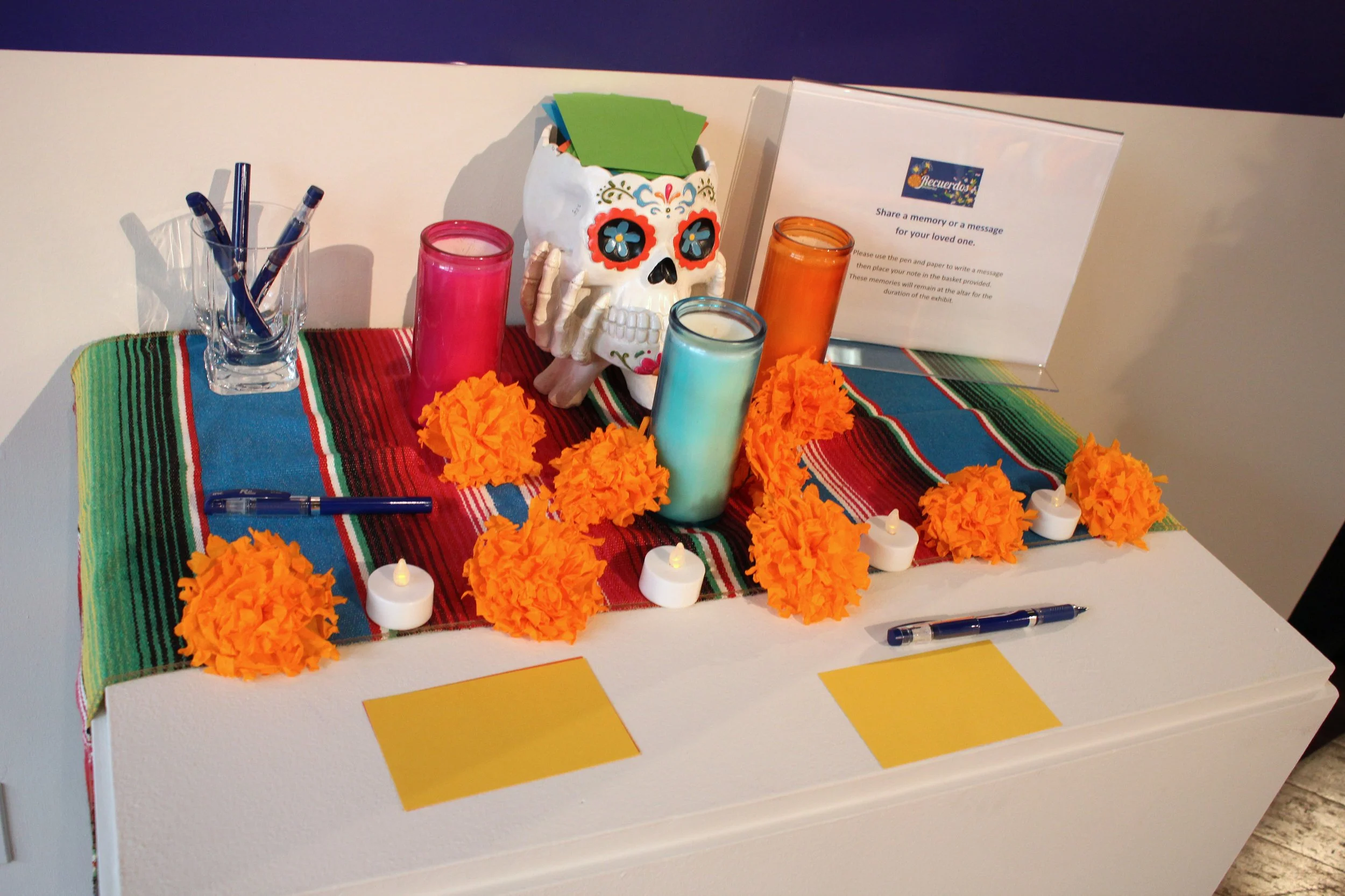 Día de los Muertos, also known as Day of the Dead, is a Mexican holiday where families remember deceased relatives and loved ones. Its roots date back to Pre-Columbian Mesoamerica over 3000 years ago. Today, celebrations vary from region to region, and often include traditional food and family altars, called ofrendas. In this exhibit, Kansas City-based artists celebrate their cultural heritage through art and ofrendas installations.