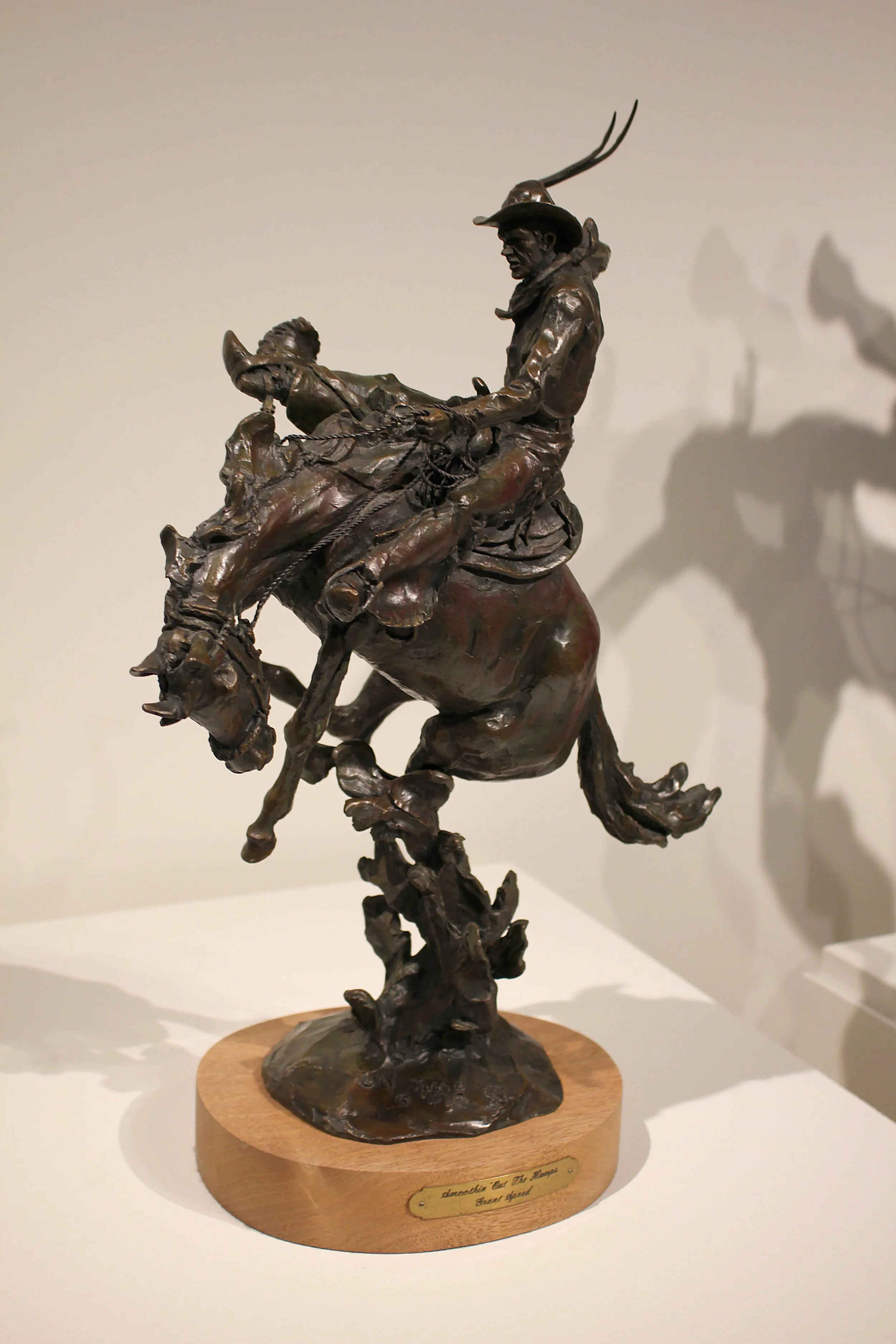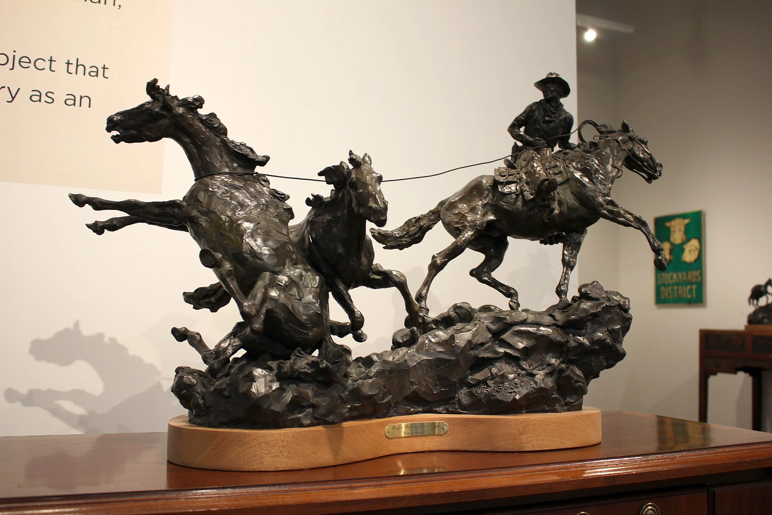 This exhibit features fourteen bronze sculptures by the artist Ulysses Grant Speed. These pieces, in the Western Art tradition, depict heroic, hardworking cowboys. They were collected by Bill Haw Sr., a Kansas City businessman, rancher and entrepreneur.
